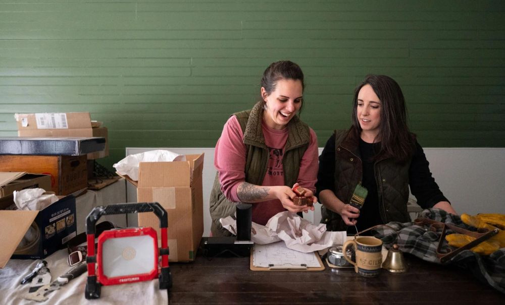 Sisters and co-owners Mariana Gibaldi, left, and Damaris Graham, right, inspect shelving on Thursday at the Gilsum Village Store. “You don’t go opening a general store if you want to be a millionaire. That’s not our goal at all. Our goal is to have a place that feels like home for us and for the community, that we can have a work-life balance in, that we can provide an essential service for the town and also ourselves,” Graham said. “It’s an essential service, but it’s also bringing joy to the community. Gilsum is such a hidden gem of a town.” (Bailey Stover/Sentinel Staff)