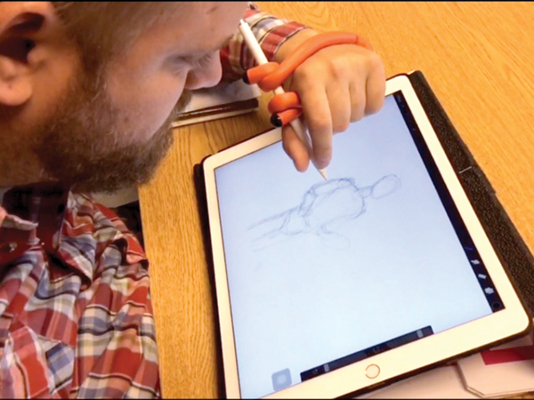A client at the UNH Institute on Disability uses a modified pencil grip. Courtesy photo.