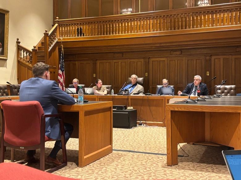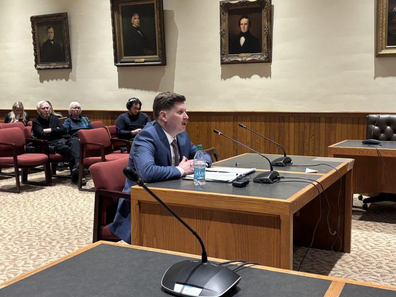 The Executive Council asks questions to Christopher Ellms Jr. during his hearing for the Public Utilities Commission chair on Monday, March 2, 2026. (Credit: EMILIA WISNIEWSKI/Monitor)