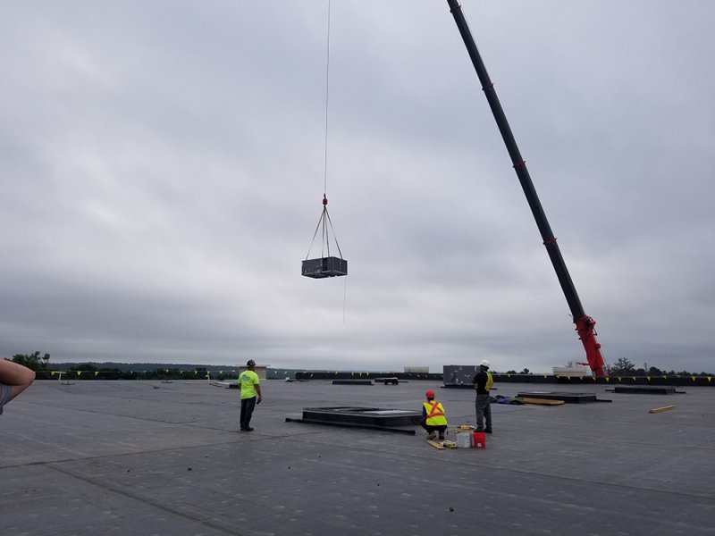 Installing new HVAC units at Planet Fitness in the Apple Tree Mall. Courtesy of Vernet Properties.