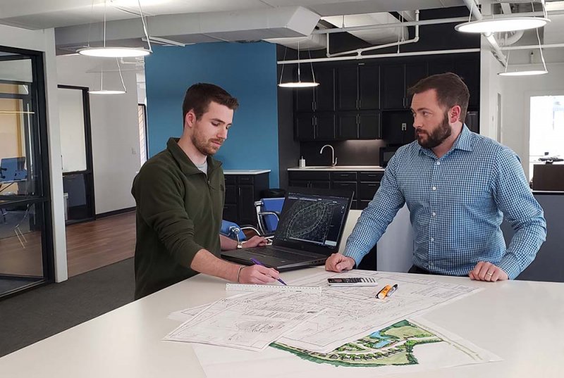 Sam Kauhl, project engineer, and Doug MacGuire, vice president of engineering, collaborating at The Dubay Group. Courtesy photo.