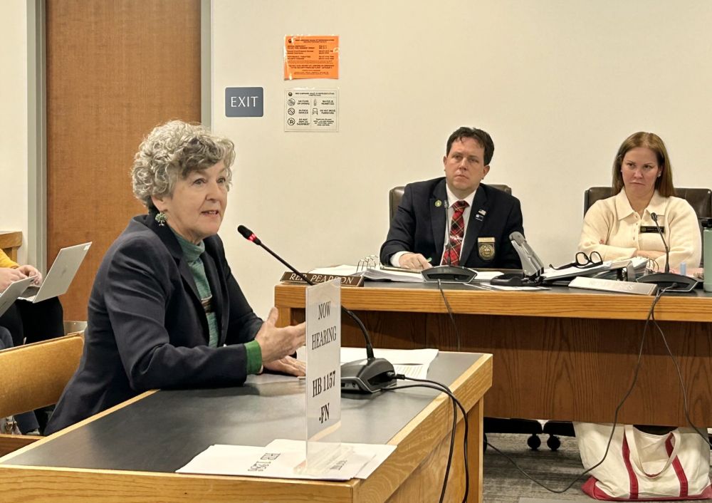 Rep. Jessica LaMontagne, a Dover Democrat, presents a bill to legalize organic reduction of human remains before the House Committee on Executive Departments and Administration on Thursday, Jan. 22. People may choose natural organic reduction for the similar reasons they would choose cremation, LaMontagne said. “They want to just go back: ashes to ashes, dust to dust. This is earth to earth, a more ephemeral and ecological way.” (Photo by Molly Rains/New Hampshire Bulletin)