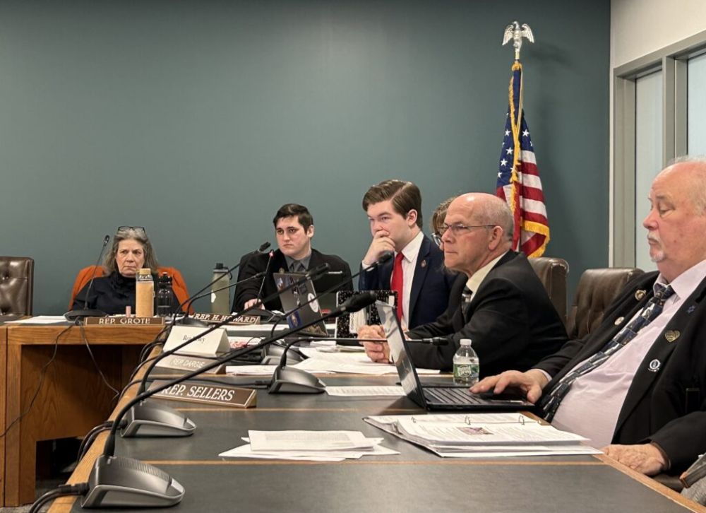 Members of the House Committee on Executive Departments and Administration listen to testimony on a proposal to legalize natural organic reduction of human remains, sometimes called “human composting.” (Photo by Molly Rains/New Hampshire Bulletin)
