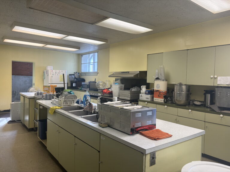 The kitchen in the basement of the First Congregational Church in Claremont, which The Well Collaborative will renovate into a cooperative kitchen. (Photo by Maya Mitchell/ New Hampshire Bulletin)