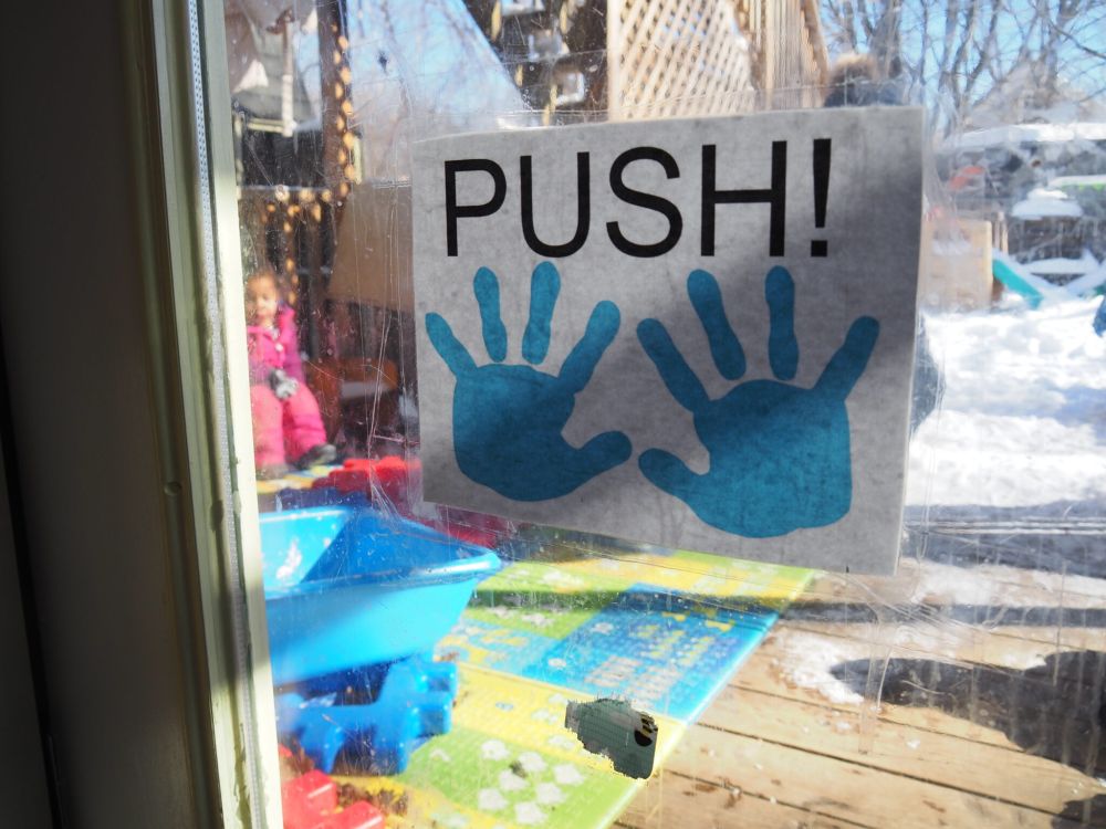 A door between a classroom and the playground at Rise For Baby and Family in Keene. The program, along with two others, received a Northern Border Regional Commission grant in December. (Photo by Maya Mitchell/ New Hampshire Bulletin)