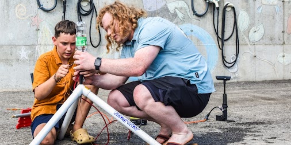 White Mountain Science students design and prepare a water-based rocket for launch (Photo Courtesy of White Mountain Science)