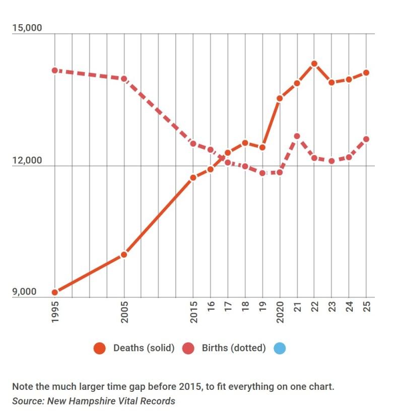 Since 2016, the state has seen more than 10,000 excess deaths over births. If it wasn’t for in-migration of people, mostly from other states but also from other countries, New Hampshire would be shrinking.