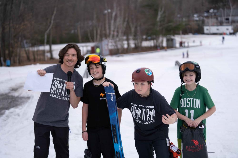 McIntyre Ski Area held the Grip N Rip rail jam with 128 athletes as young as six. Tow Pro Lifts set up portable rope to support riders in the park during the event access to the Mac Pac Terrain Park.