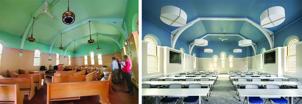 “As an architect, you look at it and try to reuse what you can,” Lewis says. “You keep vertical circulation. You flip the design process, finding ways to make it work instead of starting with a blank slate.”