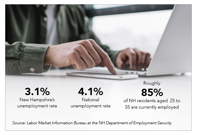 “Sometimes when the unemployment rate rises, it’s actually not a bad thing,” says Gottlob. He notes that in 2024, a modest increase in NH’s unemployment rate wasn’t driven by layoffs, but rather by more people who were new to the labor force or reentering the market after