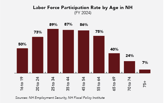Those shifts are already impacting NH’s workforce. Currently, nearly one-third of the workforce is over the age of 54, according to the NH Fiscal Policy Institute. That means about 210,000 Granite Staters are approaching traditional retirement age.