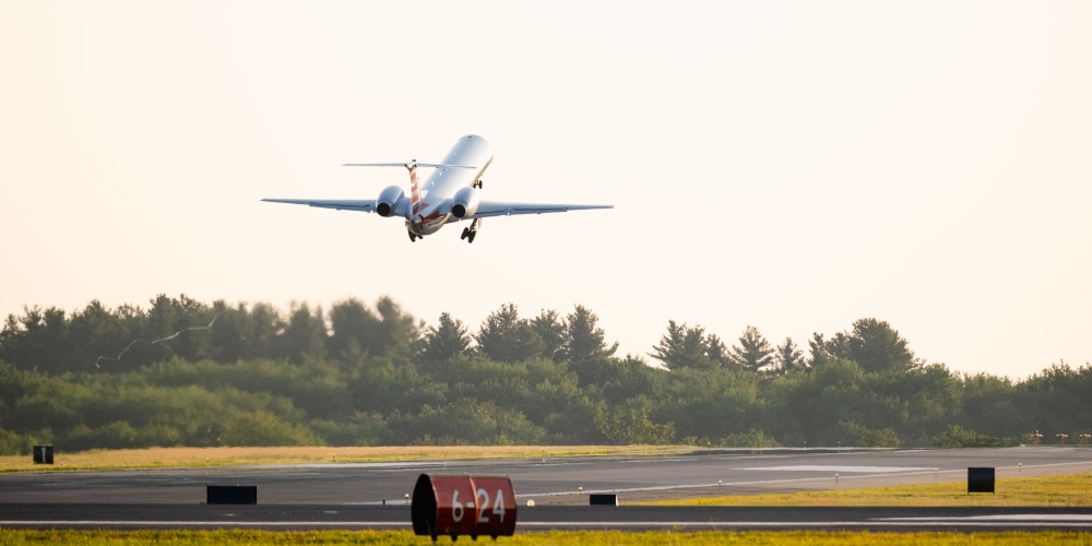 Airplane taking off from Manchester-Boston Regional Airport (Courtesy of Manchester-Boston Regional Airport)