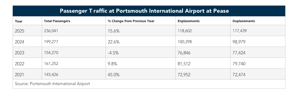 Portsmouth International Airport at Pease is experiencing exponential growth with April 2025 passenger traffic up 84% over April 2024. Total flights nearly doubled, increasing from 53 in April 2024 to 101 in April 2025, driven by the two commercial airlines—legacy carrier Allegiant Air and newcomer Breeze Airways, which began service at the airport in October 2024.