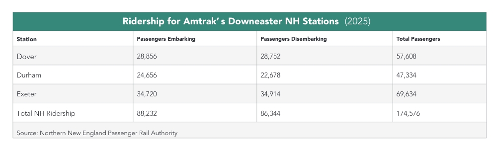 The Downeaster launched in 2001 and now serves about 500,000 riders annually. In 2025, more than 174,000 of those trips started or ended at one of the train’s NH stops, according to the Northern New England Passenger Rail Authority, which manages the service.