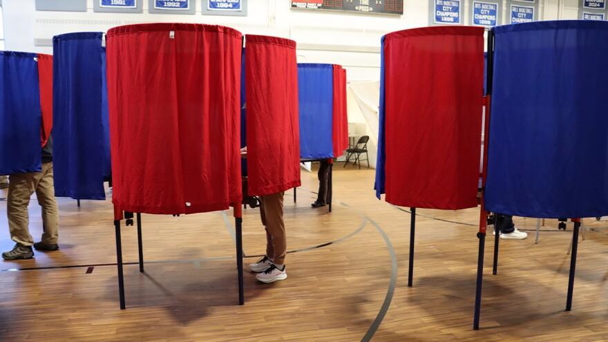 Dan Tuohy / NHPR Voters fill out ballots in Manchester's Ward 1, Tuesday, Nov. 4, 2025.